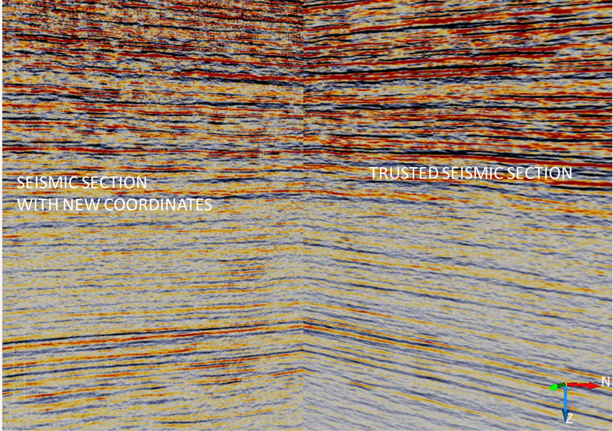 We have a seismic line with several SEG-Y files, in some cases with the same length, in others with a different length and a different process or the same process carried out in different years by different companies. When the coordinates of the SEG-Y files are plotted, they do not overlap and can be at distances of between 30 m, 70 m or even more.
